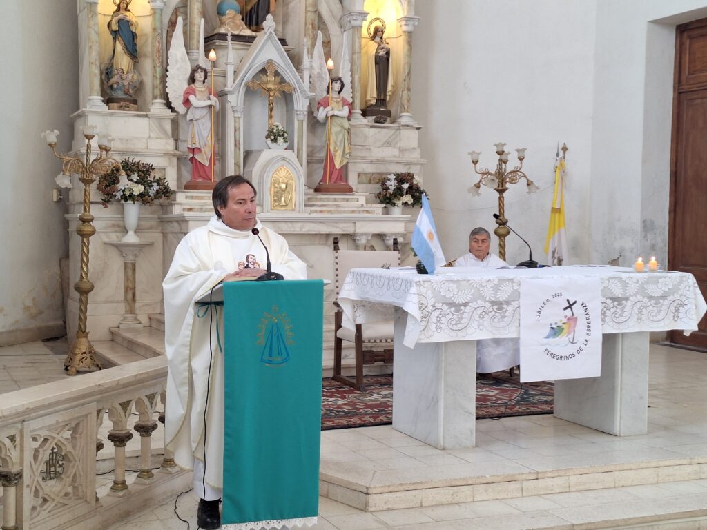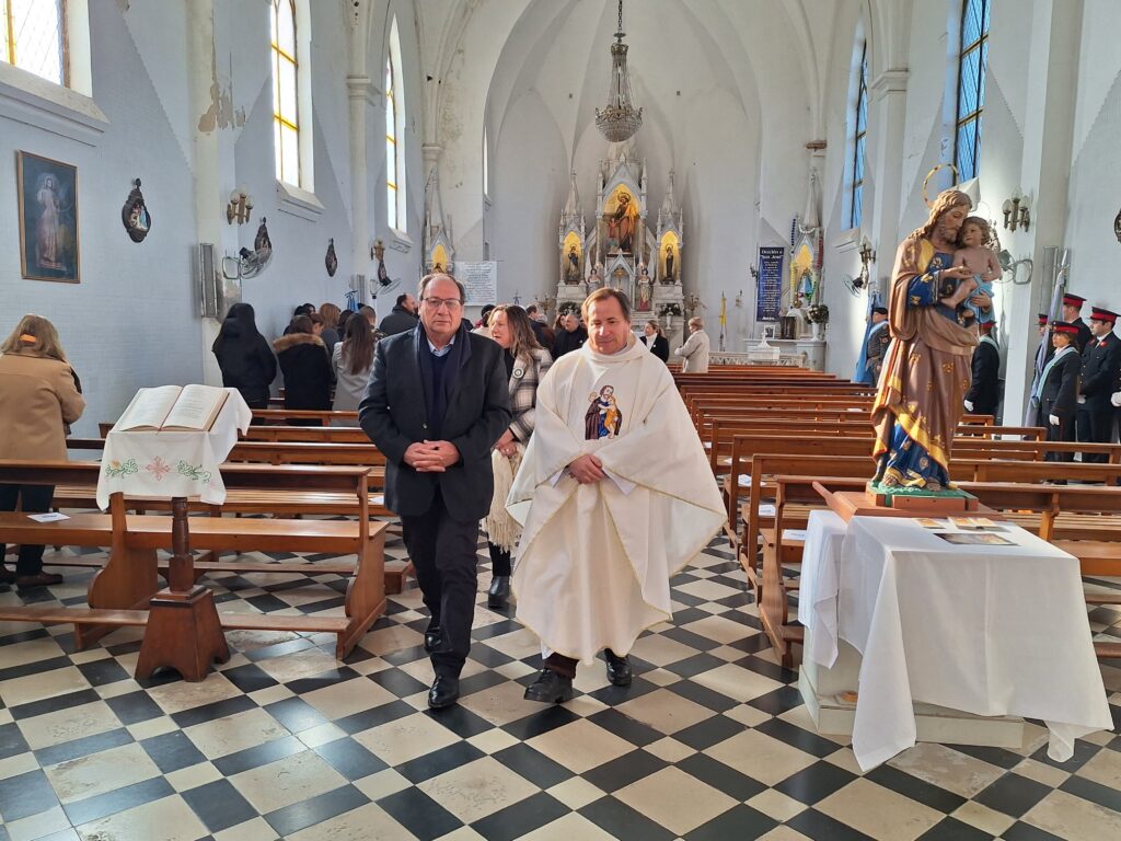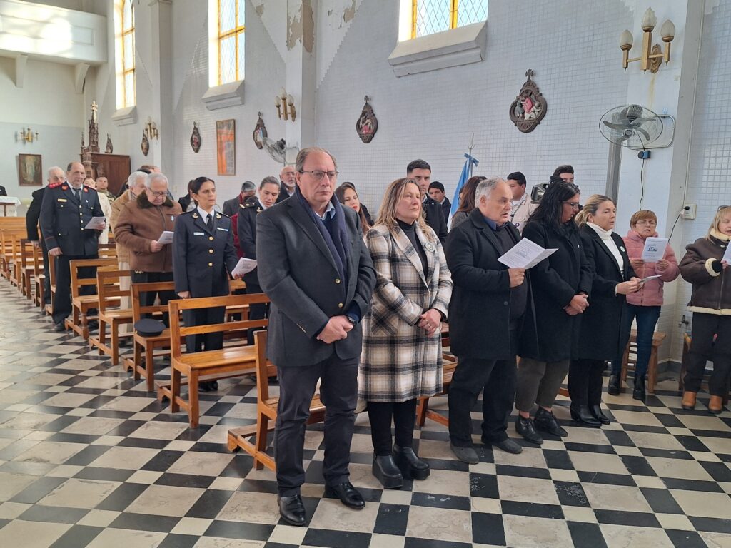 El acto litúrgico fue oficiado por el Cura Párroco Oscar Forquera acompañado por el Diacono Carlos Pina y contó con la presencia del Intendente Municipal Ramón José Capra.