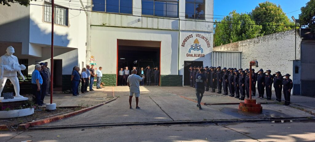 La sencilla ceremonia se realizó, a las 8:00 horas, en el playón de la institución de la calle Alsina y contó con la presencia de integrantes de la Comisión Directiva y bomberos de reserva.